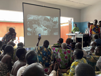 3. L’organisation d’une nouvelle mission de terrain au Bénin, en août-septembre 2024. Ce second déplacement visait à compléter les recherches entamées l’année précédente mais également à amplifier la dimension de partage et de réactivation en retournant voir la plupart des personnes rencontrées en 2023 pour leur présenter l’état d’avancement du projet. La méthode de travail est restée la même, mêlant visites sur des sites emblématiques de la mission de 1930 et entretiens avec des sachants béninois aux compétences variées. Grâce aux contacts préalablement établis, ce second voyage a également été l’occasion d’organiser des projections publiques des films et autochromes de 1930 et d’aller à la rencontre de descendants des personnes filmées et photographiées par Francis Aupiais et Frédéric Gadmer. La connaissance du fonds s’en est trouvée considérablement enrichie et l’objectif du musée de voir circuler ces images au Bénin a commencé à véritablement prendre forme.